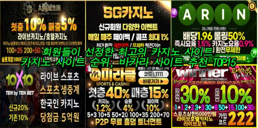 2024년 온라인 카지노 사이트 순위 TOP15, 바카라 사이트 추천은 회원들이 안전성, 빠른 충환전, 다양한 게임을 고려하여 선정한 최고의 카지노 사이트입니다. 카지노 사이트 선택 시 기준과 이용 방법, 유용한 팁도 안내합니다.